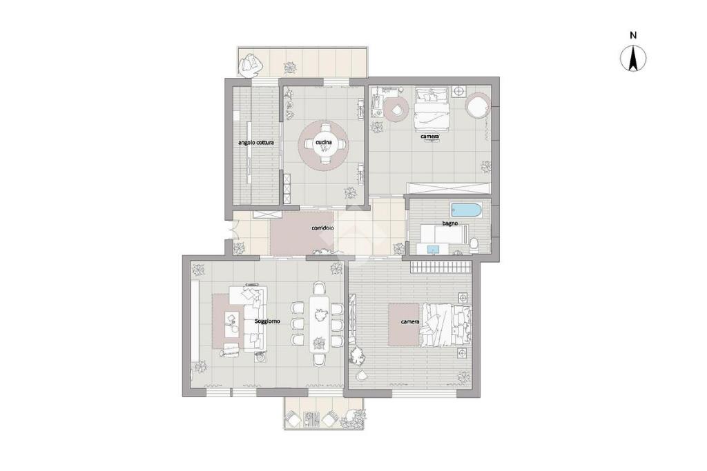 L’appartamento presenta spazi ben distribuiti: l’ingresso si apre sulla zona giorno, composta da ampia sala e da una cucina separata particolarmente luminosa entrambi con affacio sul balcone